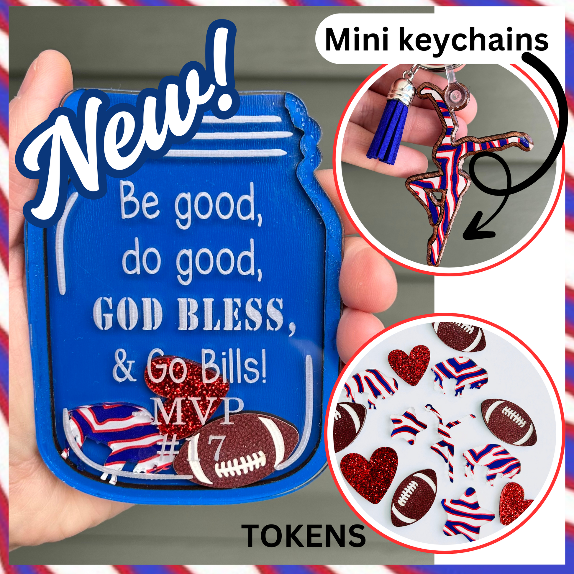 - Each jar includes 1 clear acrylic stand and 25-40 assorted acrylic tokens depending on size of jar.