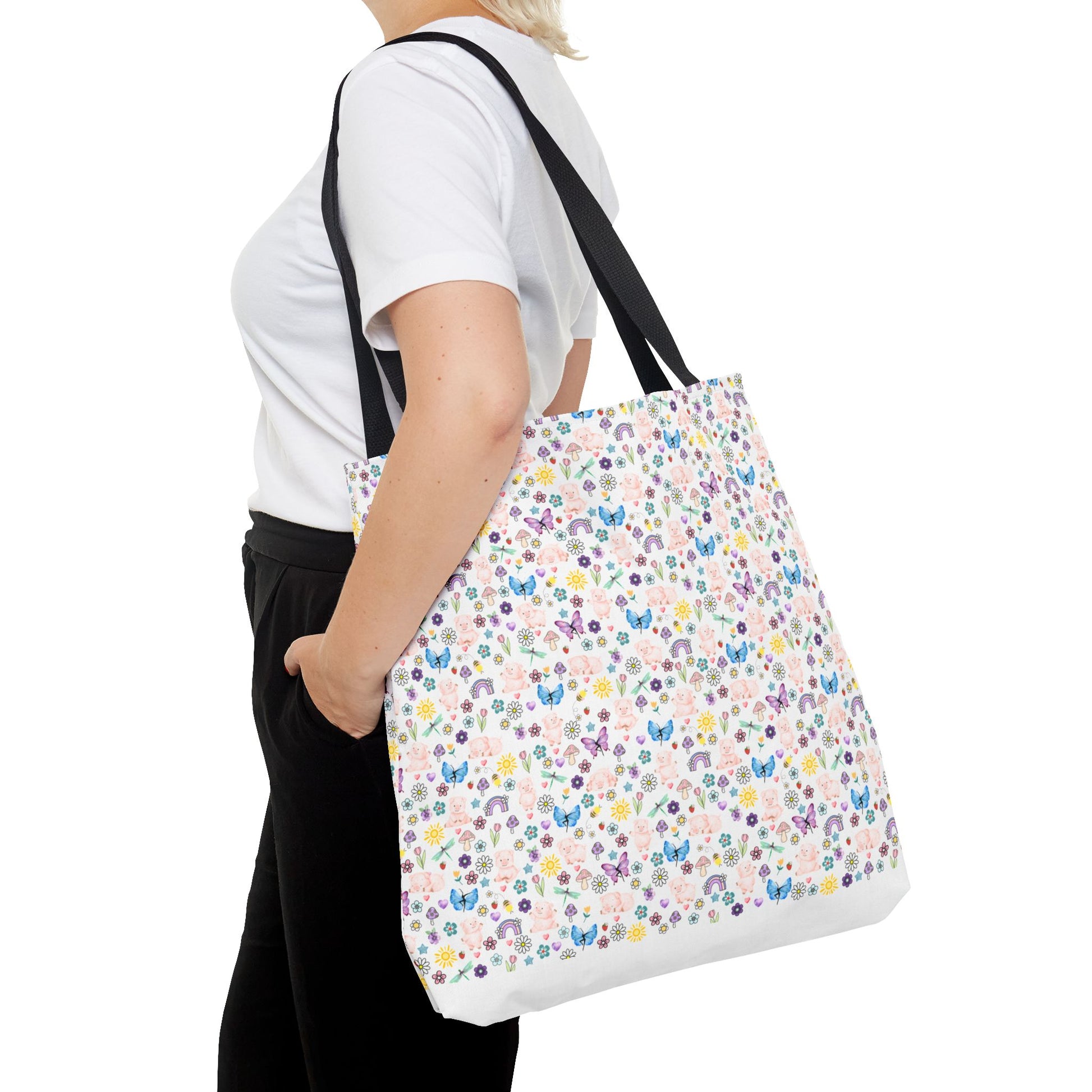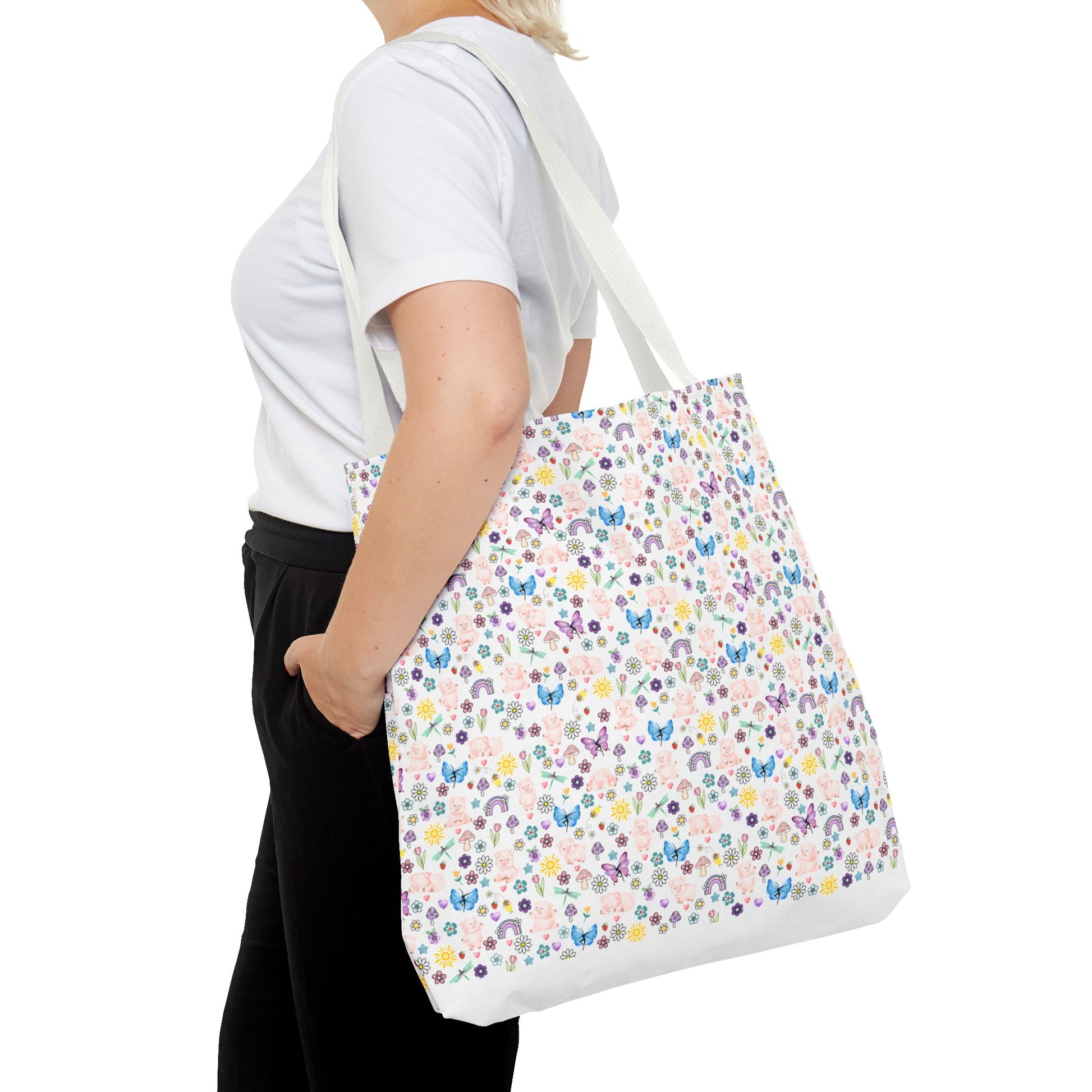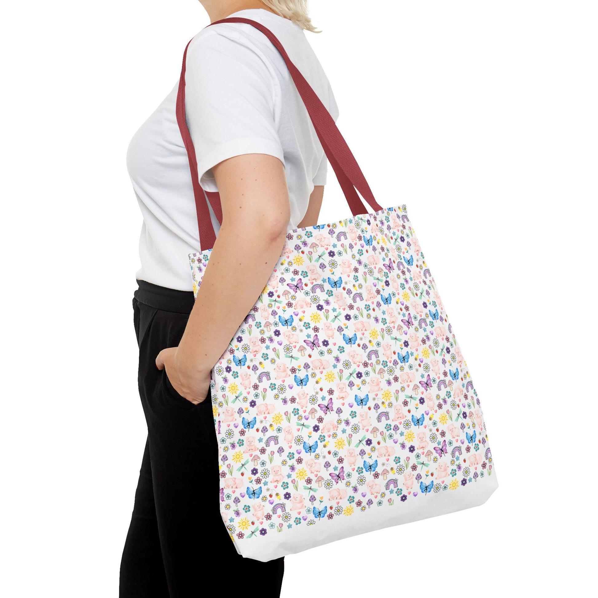 Introducing our charming Tote Bag, perfect for those who love a touch of whimsy in their everyday life. With its delightful floral and playful pig design, this tote brings a cheerful vibe to any outing. Made for both the practical and the stylish, it’s an ideal companion for busy days at the market, beach trips, or just as a casual accessory. Perfect for animal lovers, parents, or anyone looking to brighten their day, this tote is also great for gifting during special occasions such as birthdays and holidays. Its unique design makes it a thoughtful present for Mother’s Day, celebrations, or housewarming parties, embodying a spirit of fun and functionality.