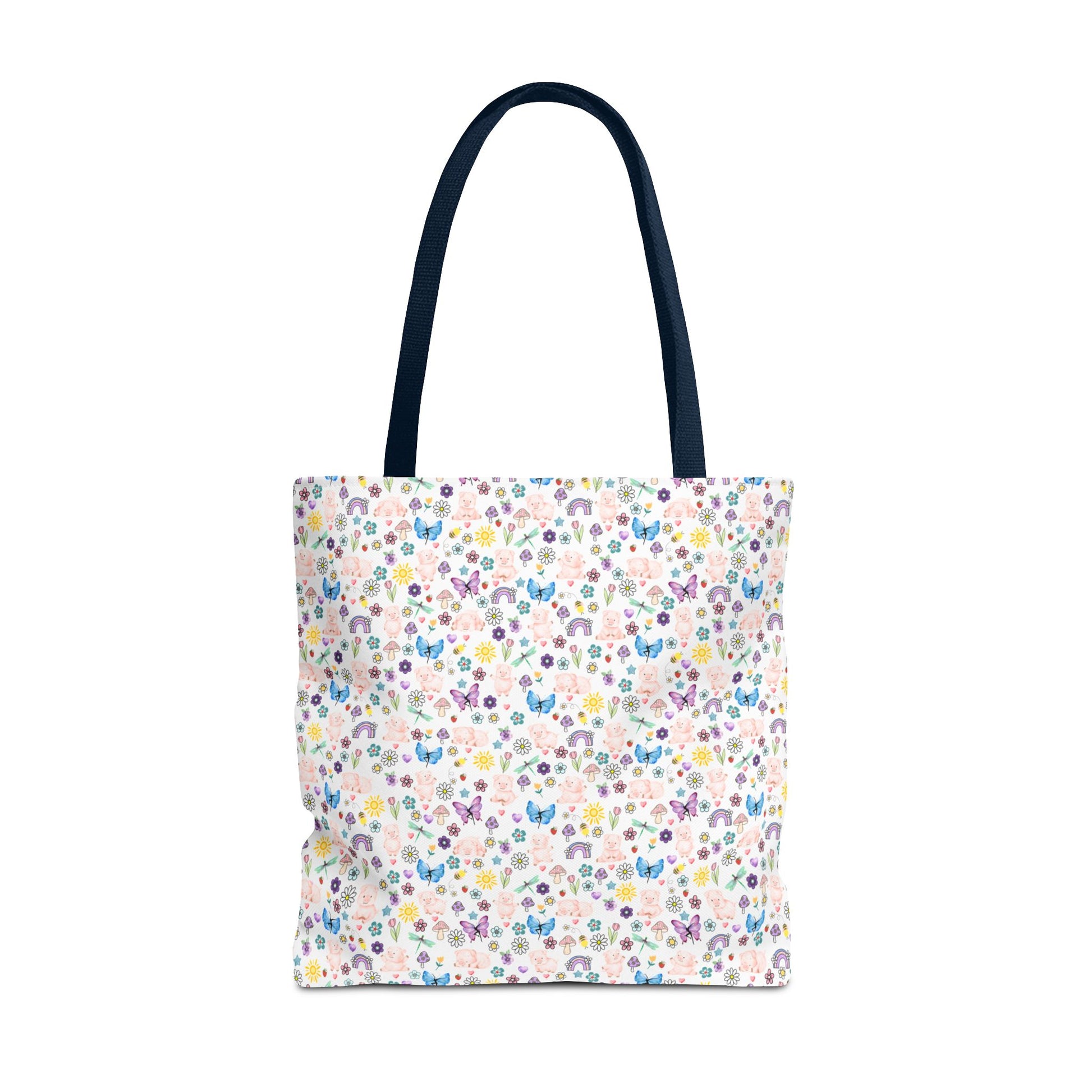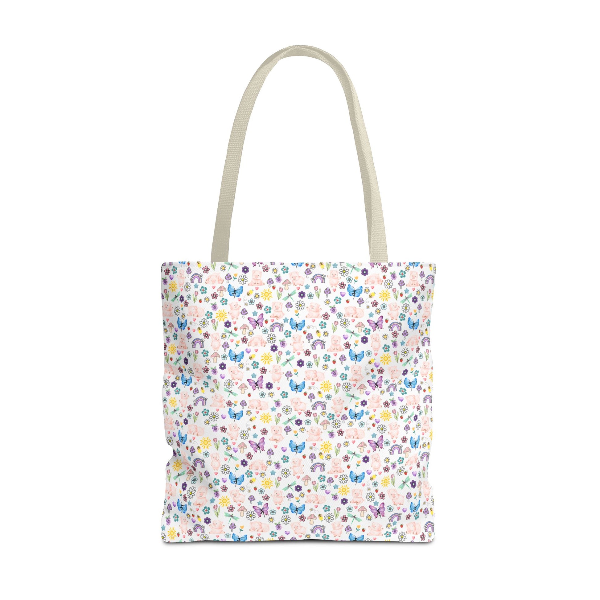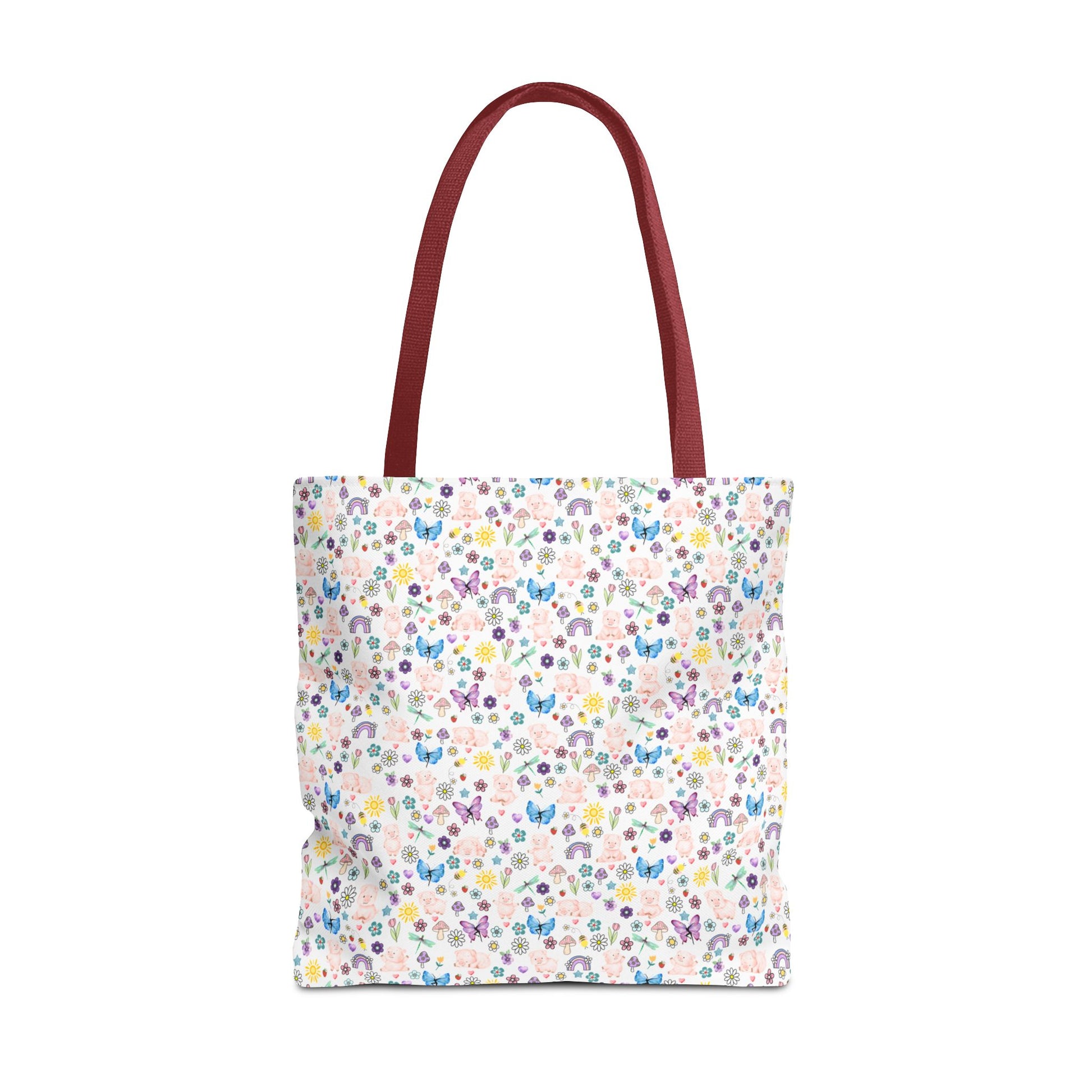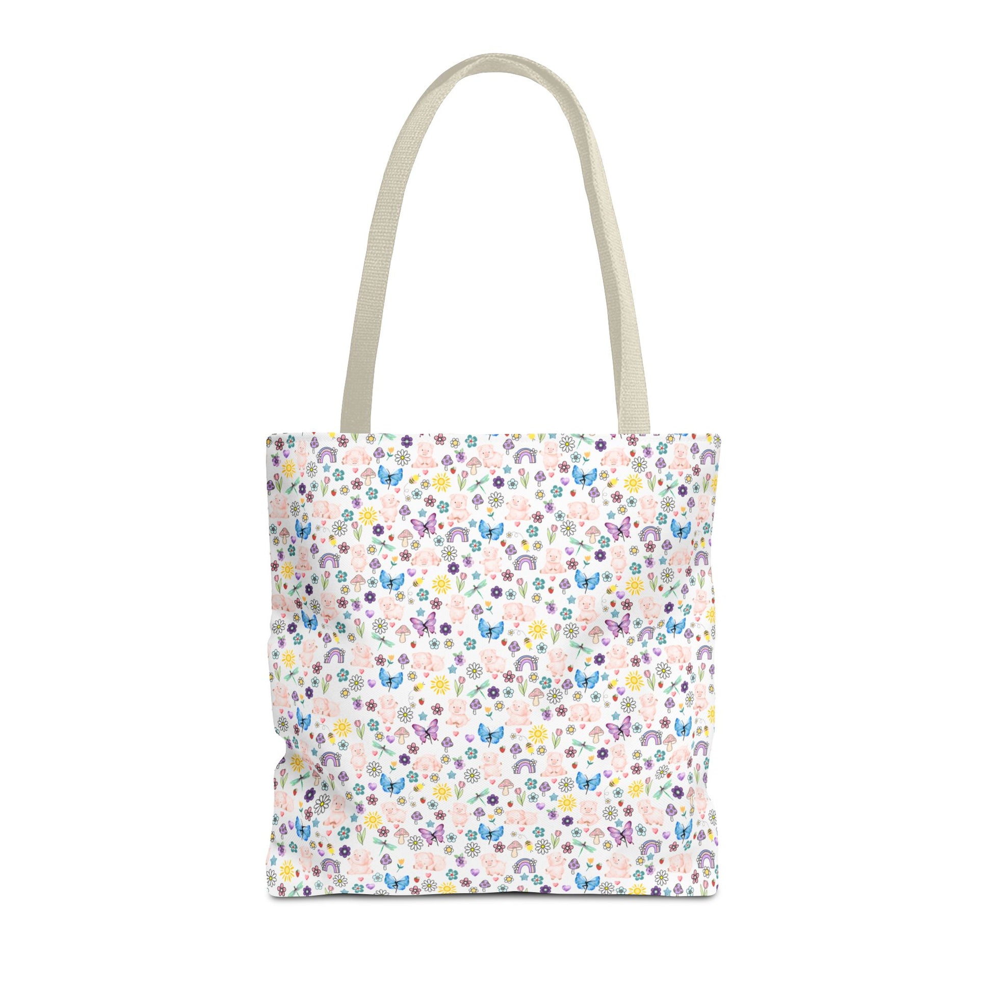 Introducing our charming Tote Bag, perfect for those who love a touch of whimsy in their everyday life. With its delightful floral and playful pig design, this tote brings a cheerful vibe to any outing. Made for both the practical and the stylish, it’s an ideal companion for busy days at the market, beach trips, or just as a casual accessory. Perfect for animal lovers, parents, or anyone looking to brighten their day, this tote is also great for gifting during special occasions such as birthdays and holidays. Its unique design makes it a thoughtful present for Mother’s Day, celebrations, or housewarming parties, embodying a spirit of fun and functionality.