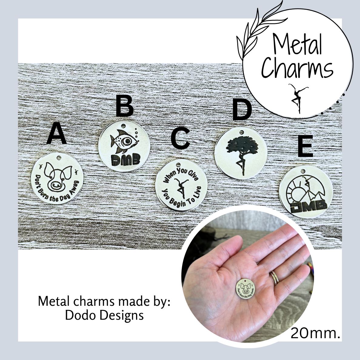 Please note: If adding a metal charm, lobster clasp and keyring will be switched out to a silver metal.