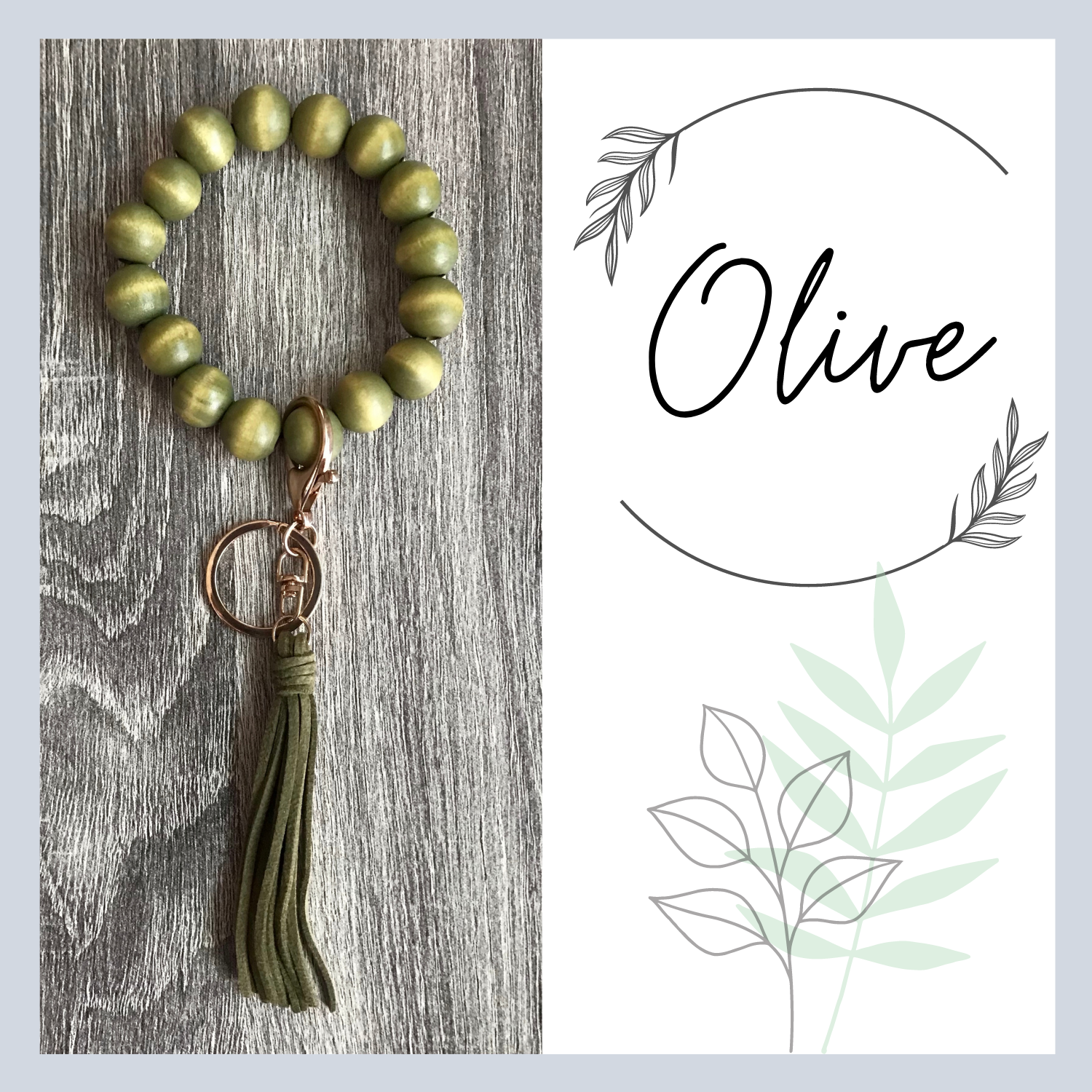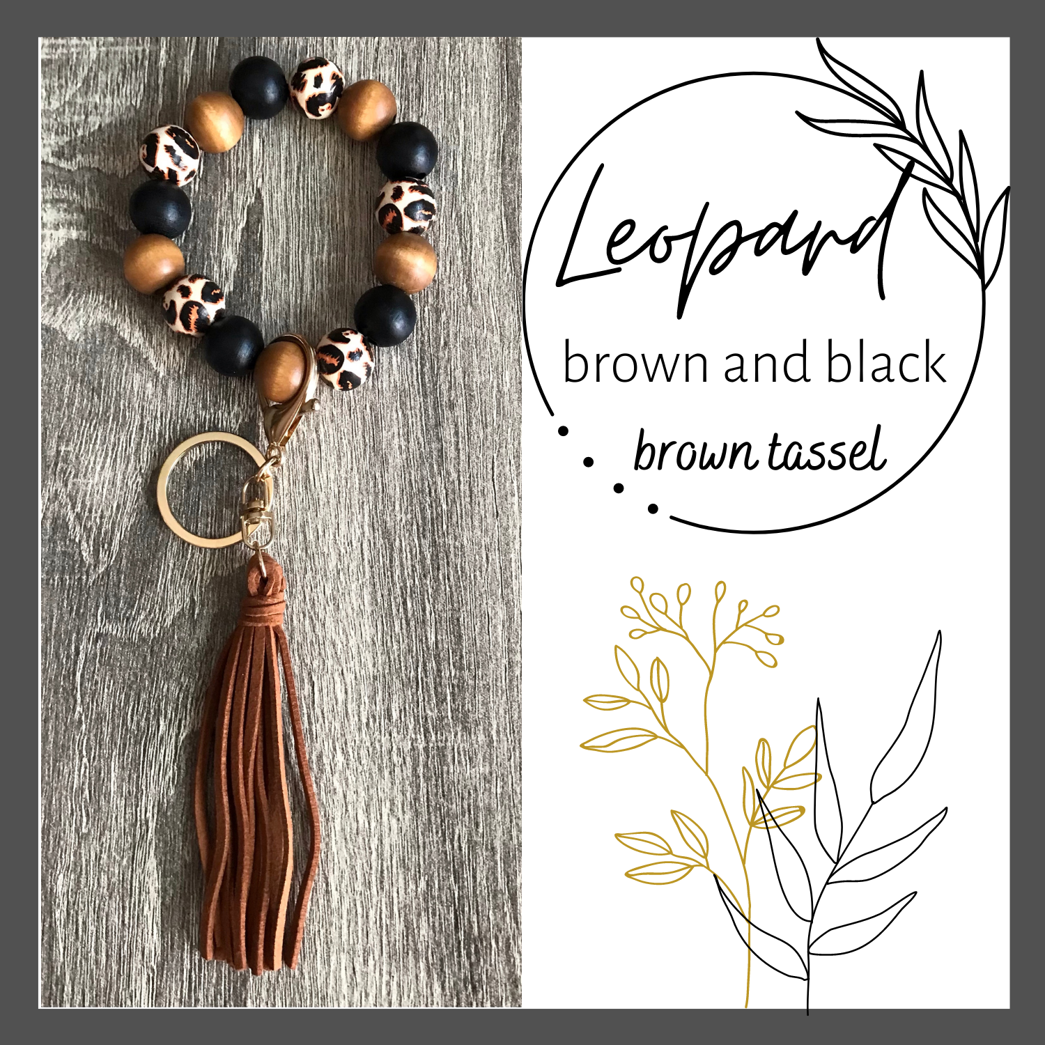 Each keychain is assembled with wood beads, suede tassel, and hardware.